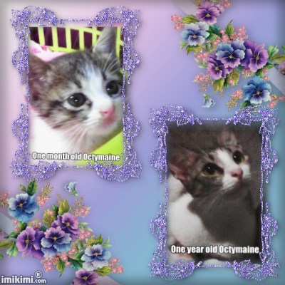 I also get called Octy. I like... kneading, grooming mom's hair... dislike belly rub... I enjoy playing with paper bags and eating whiskas...